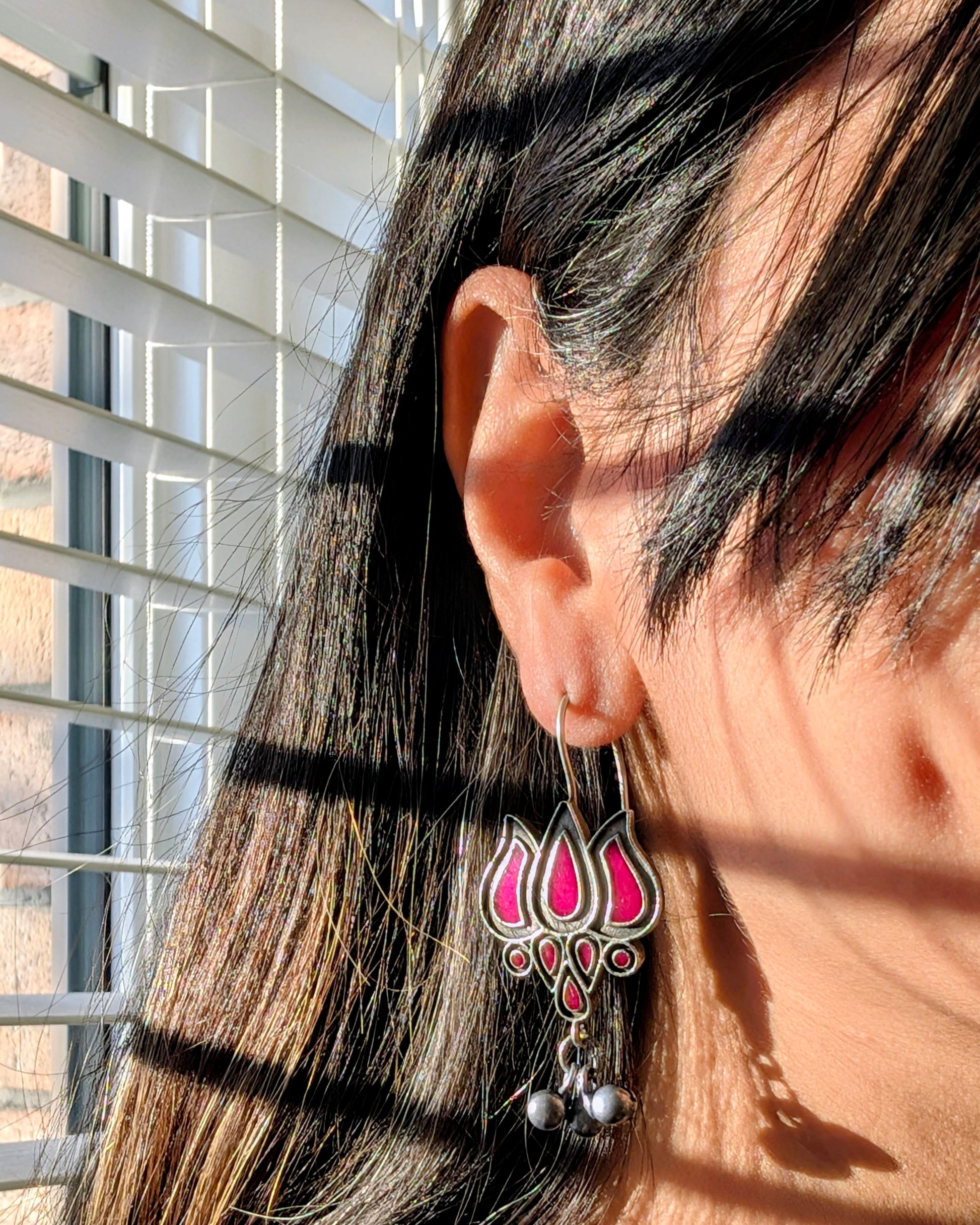 Lightweight hand painted enamel oxidized silver brass jhumki earrings