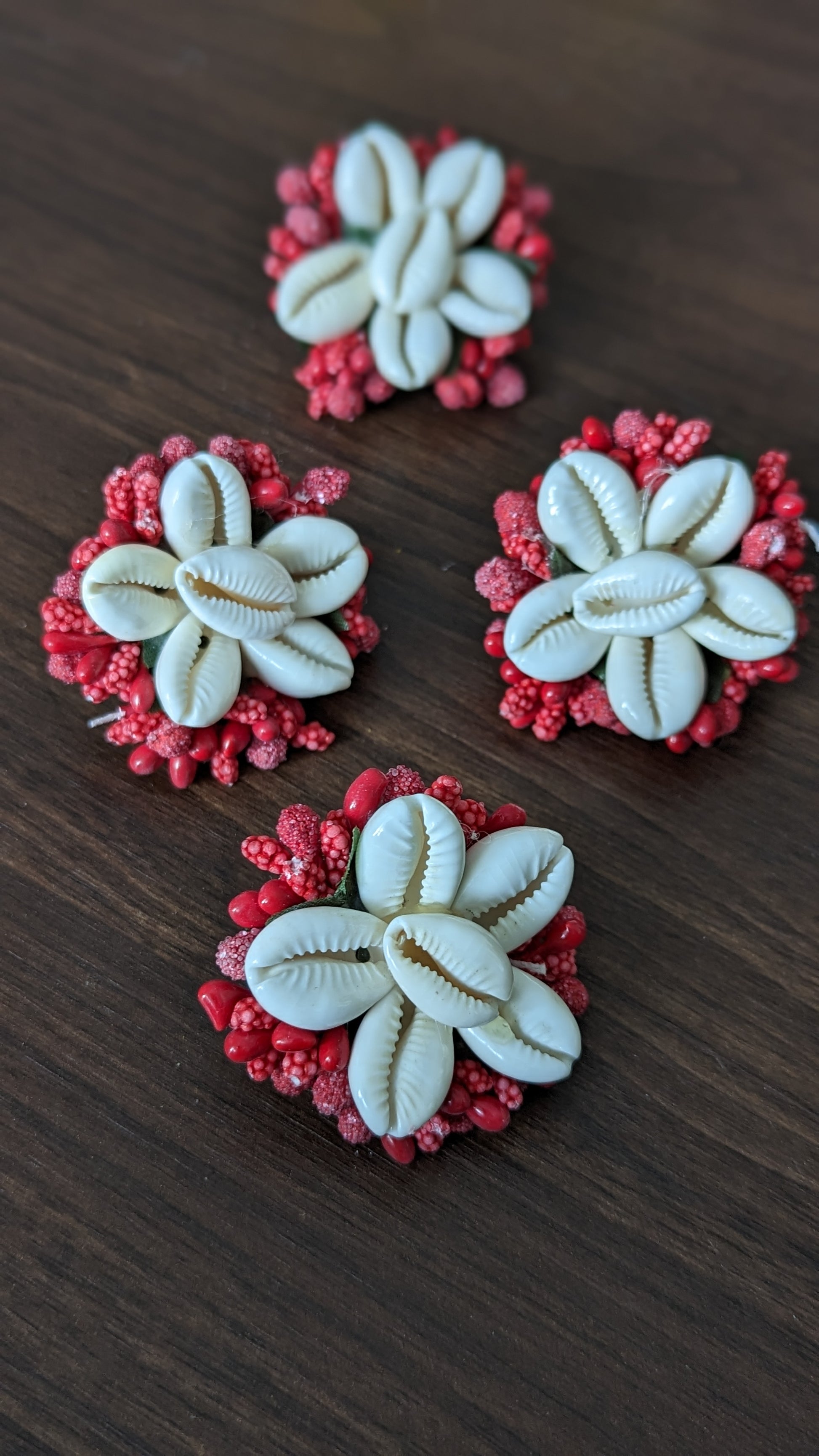 Floral seashell rings with red flower details, with an adjustable band. Price is for a pack of 5 rings.