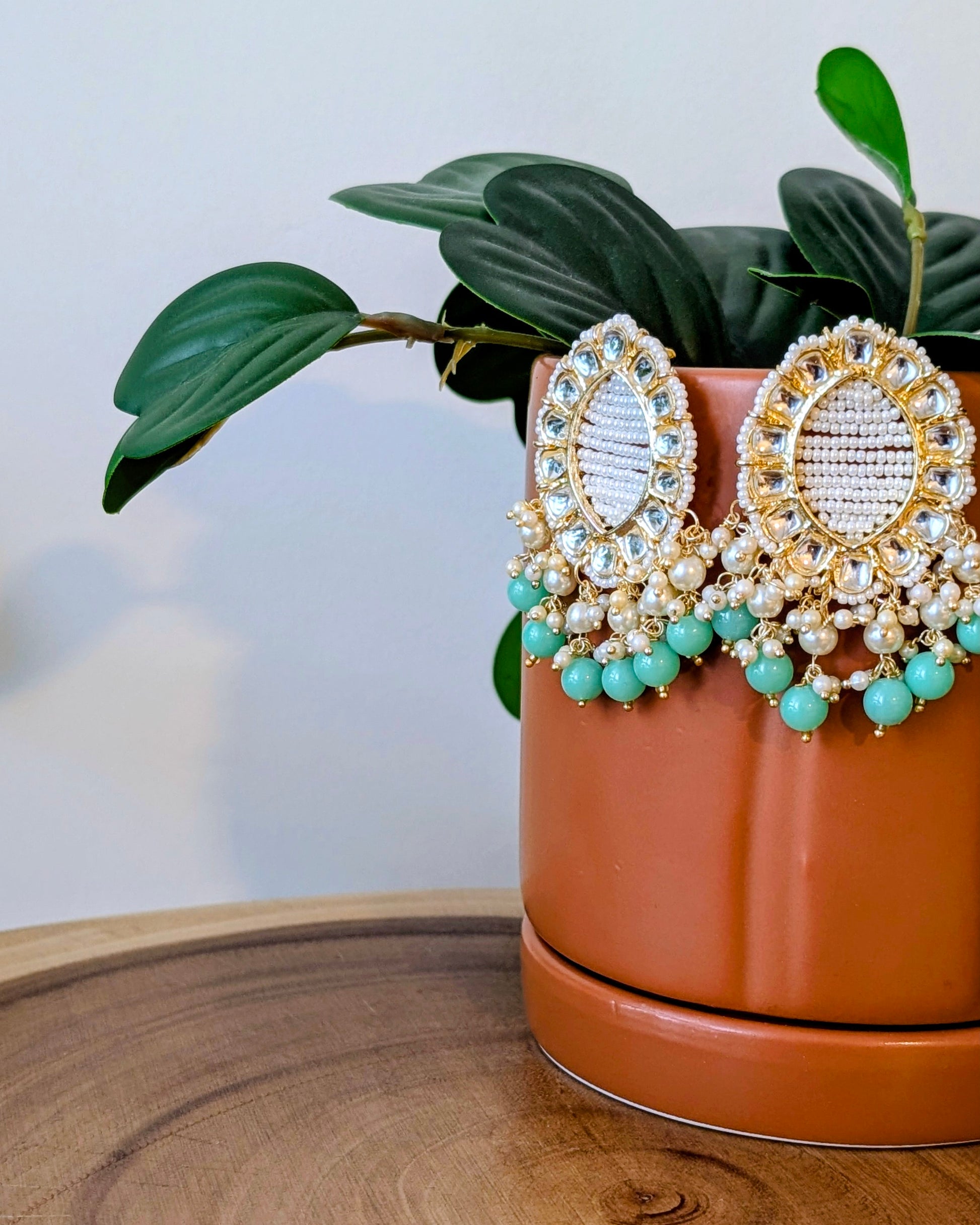 Ginni Kundan Drop Earrings - Mint