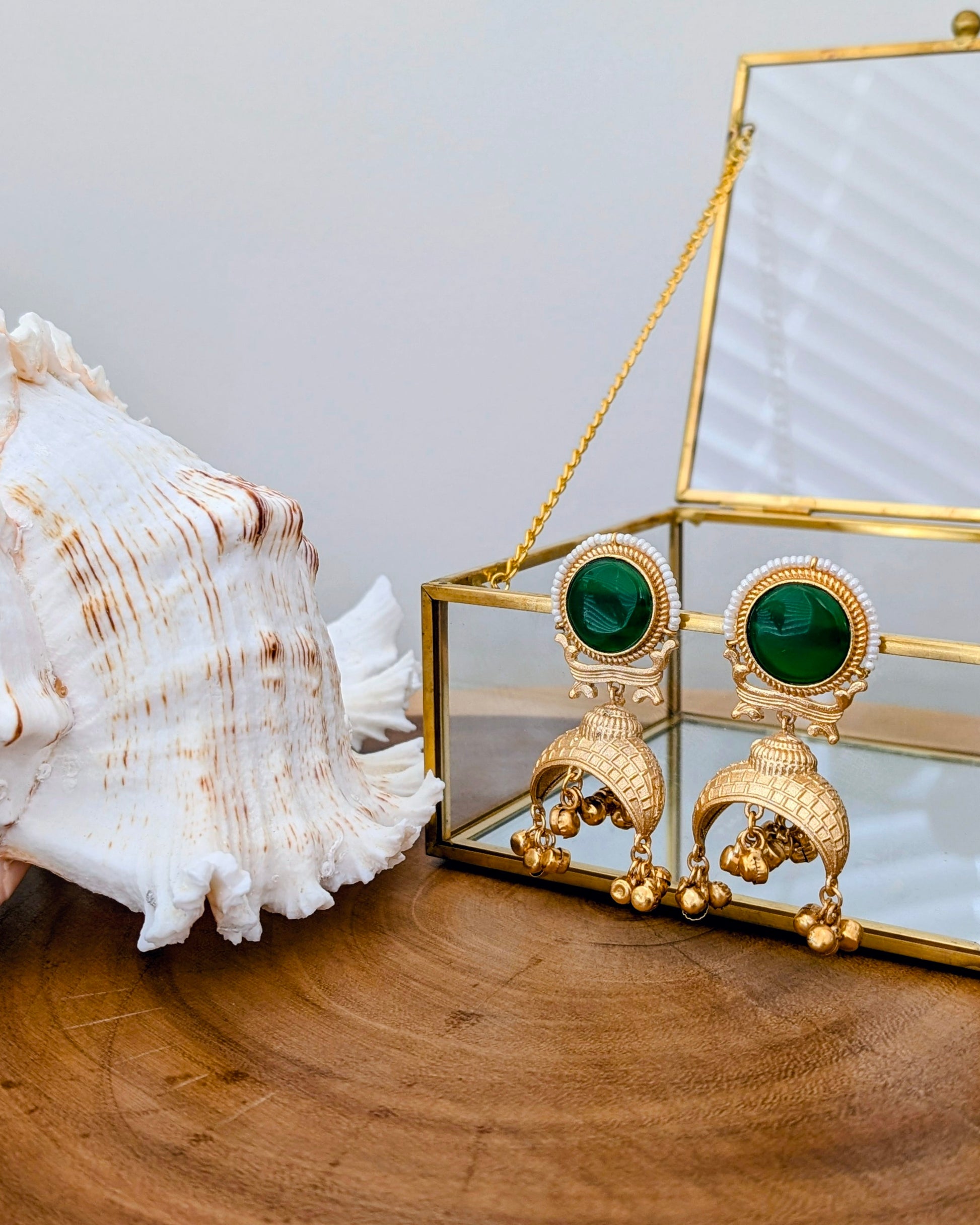 Hadia Golden Kashmiri Jhumke - Green