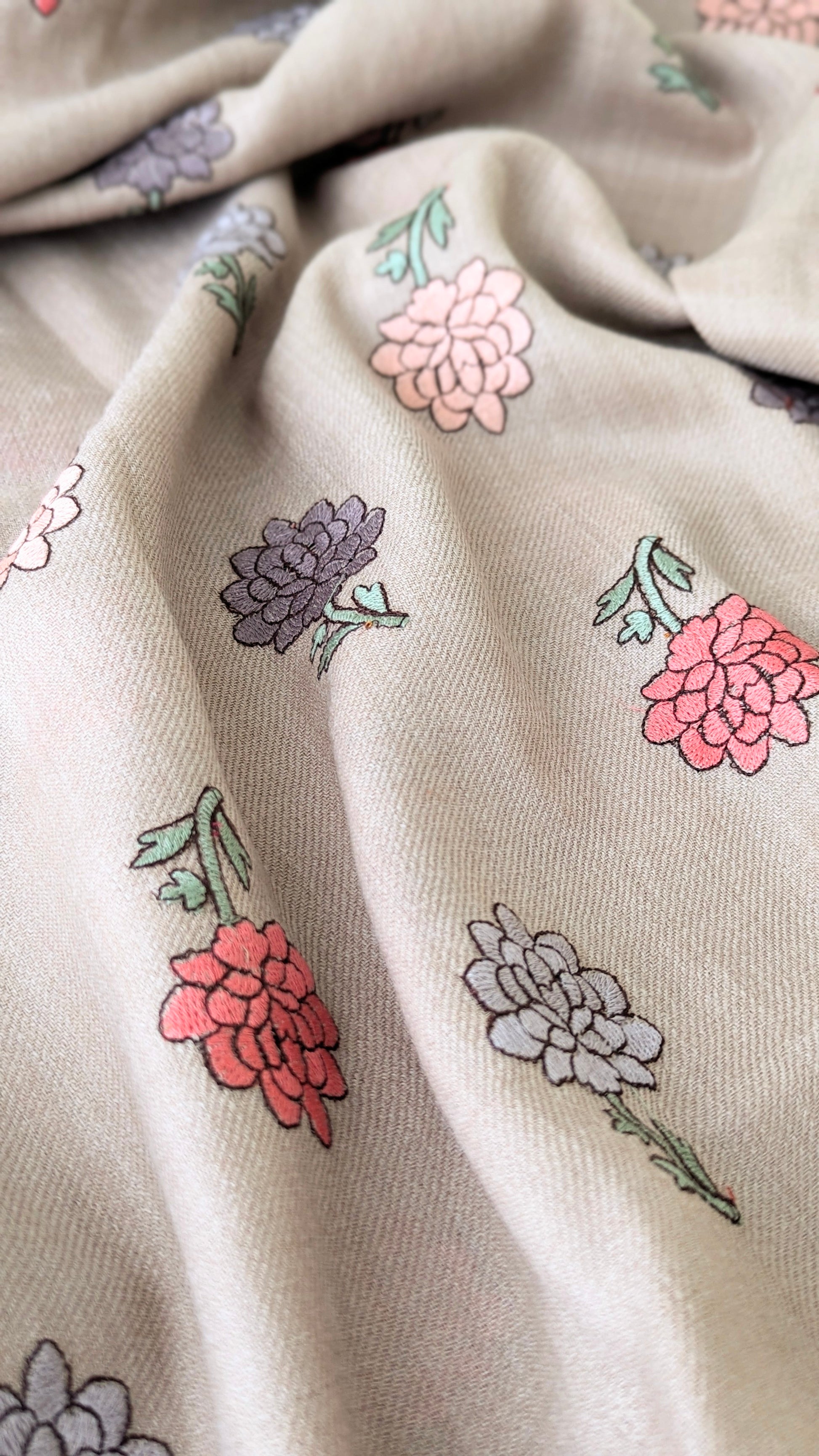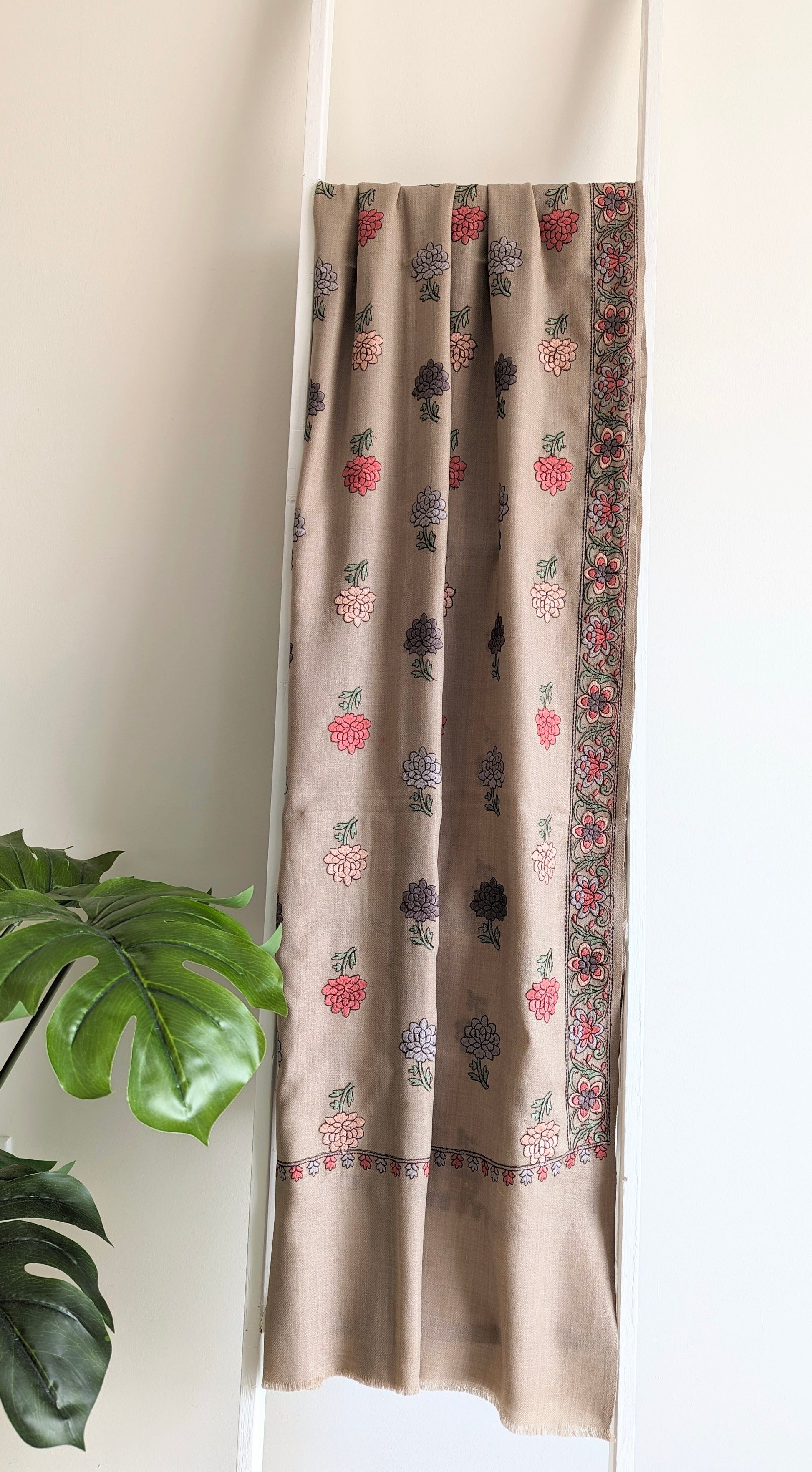 Traditional kashmiri embroidery shawl with modern design.