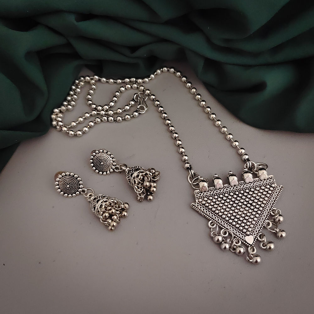 Lightweight silver necklace with earrings.