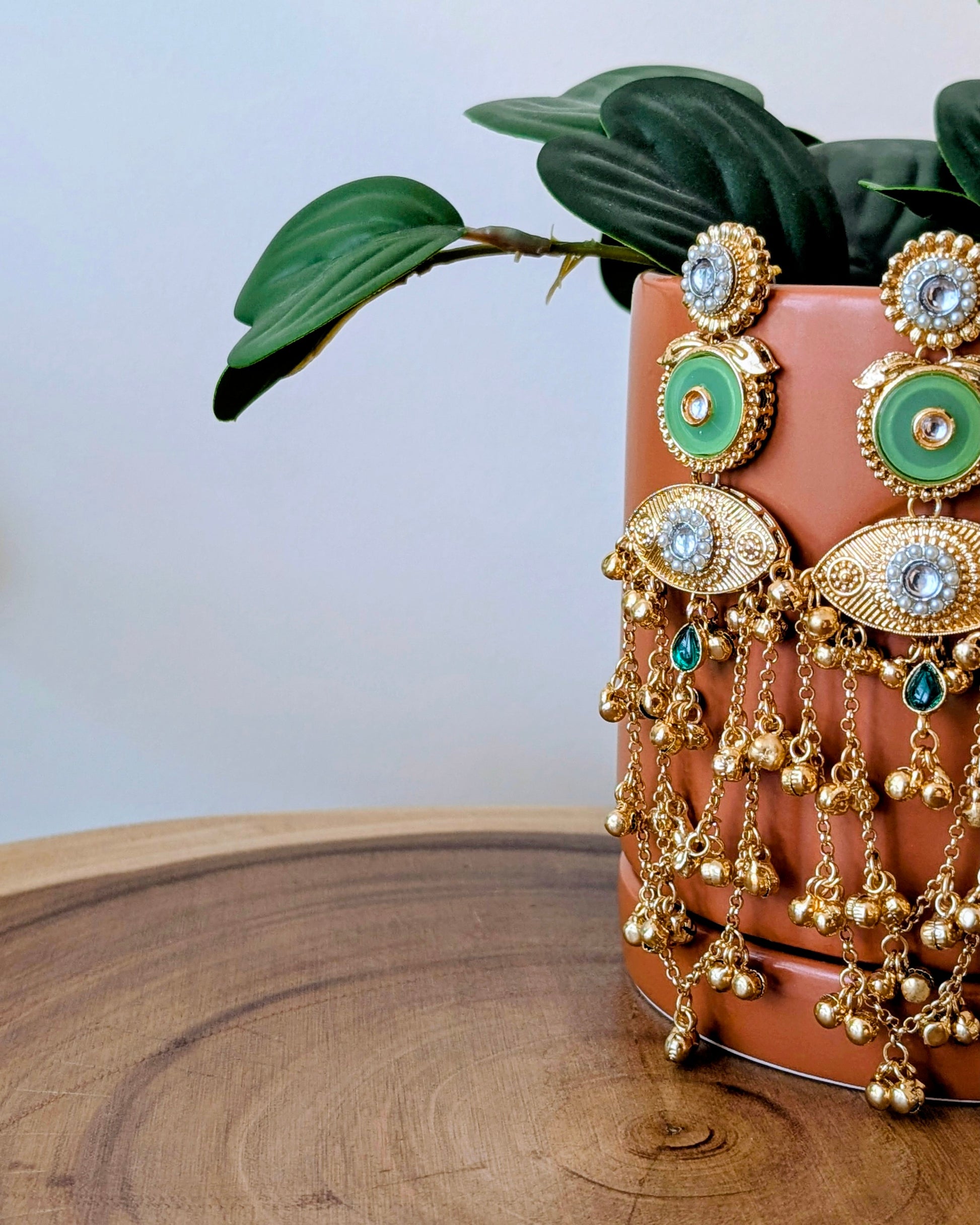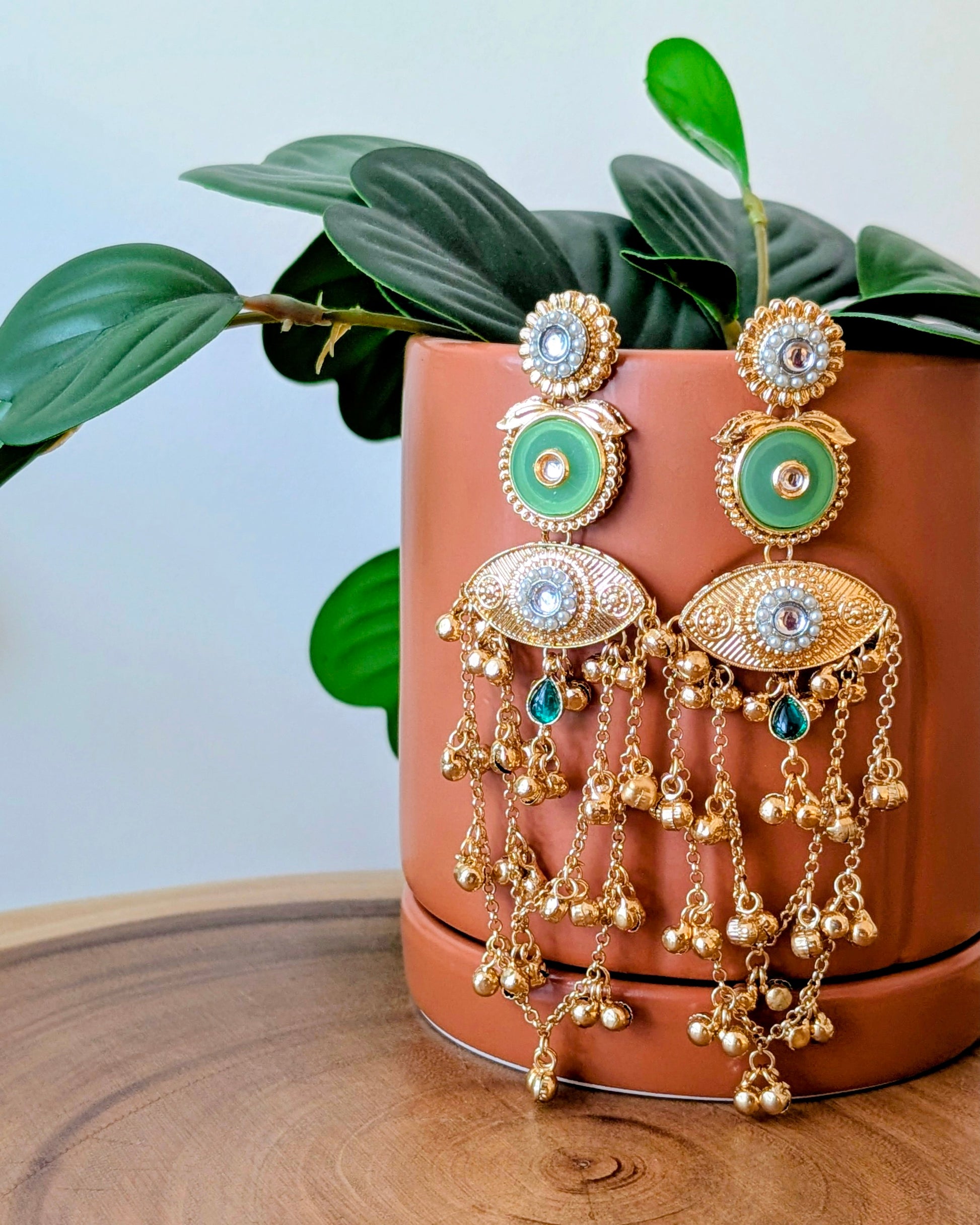 Nagma Kashmiri Jhumke with Ghungroo - Mint