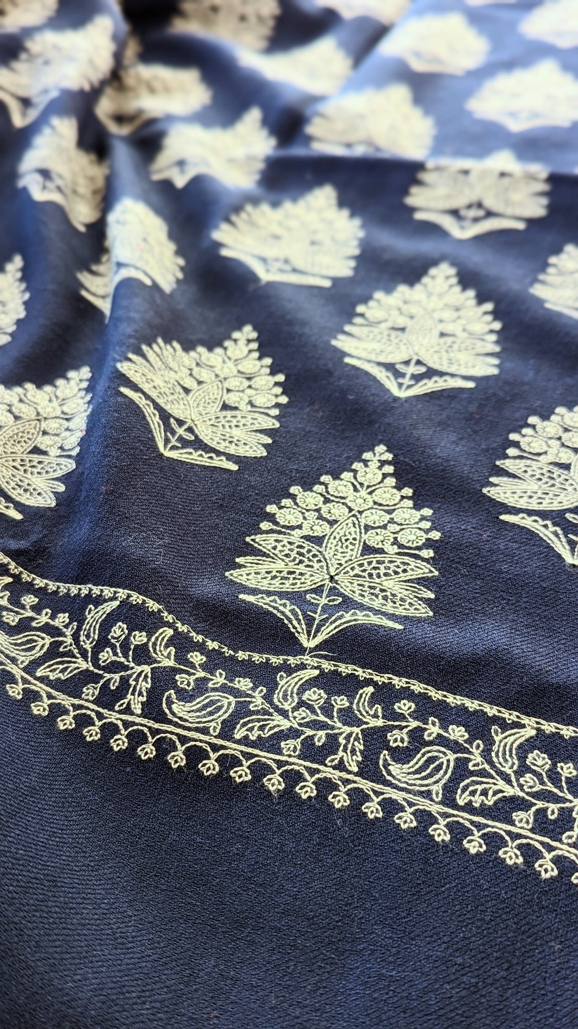 Warm & cozy Cashmere Wool Shawl with all over hand embroidery.