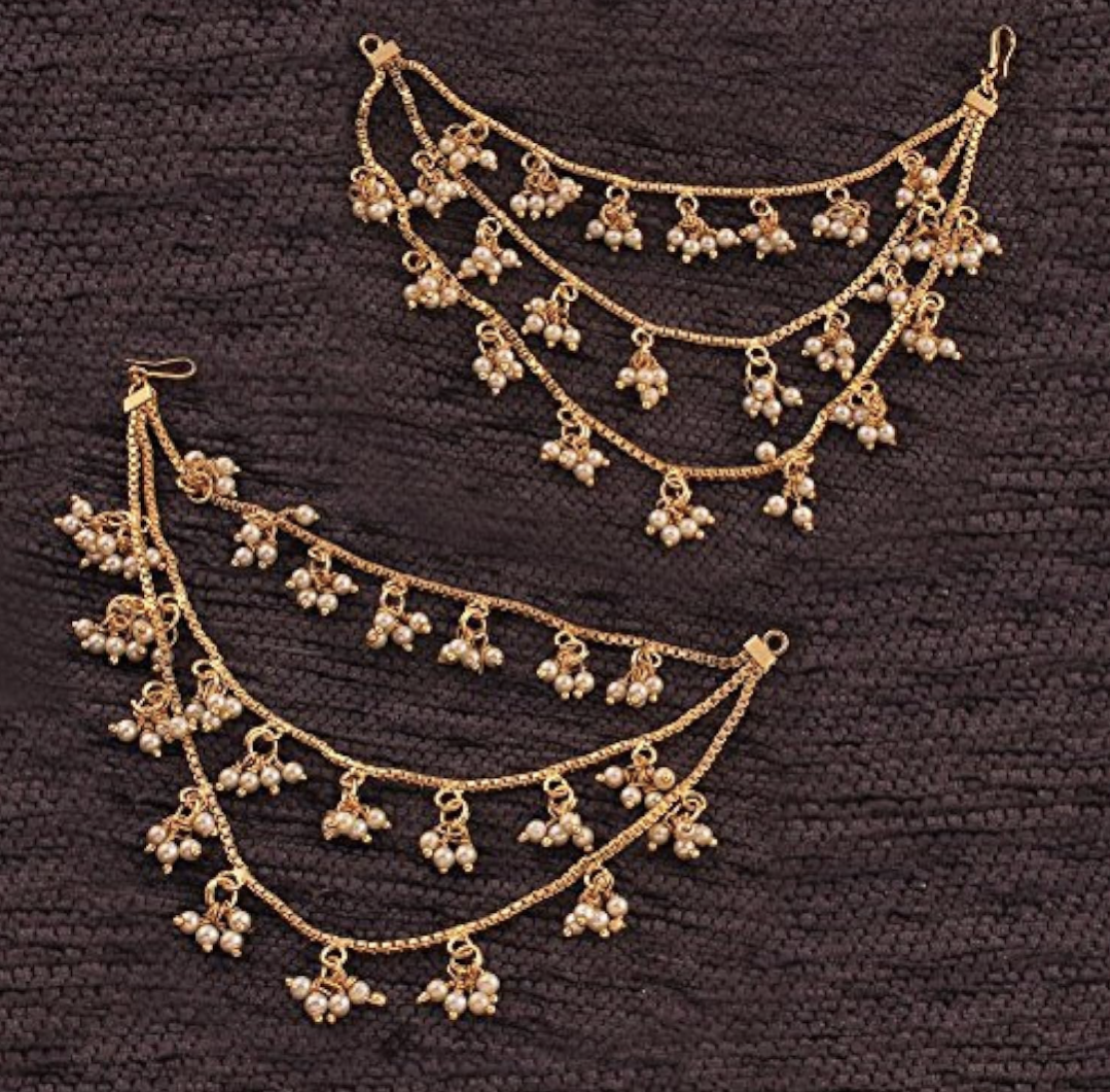 Bollywood inspired multi-layer pearl Earchains