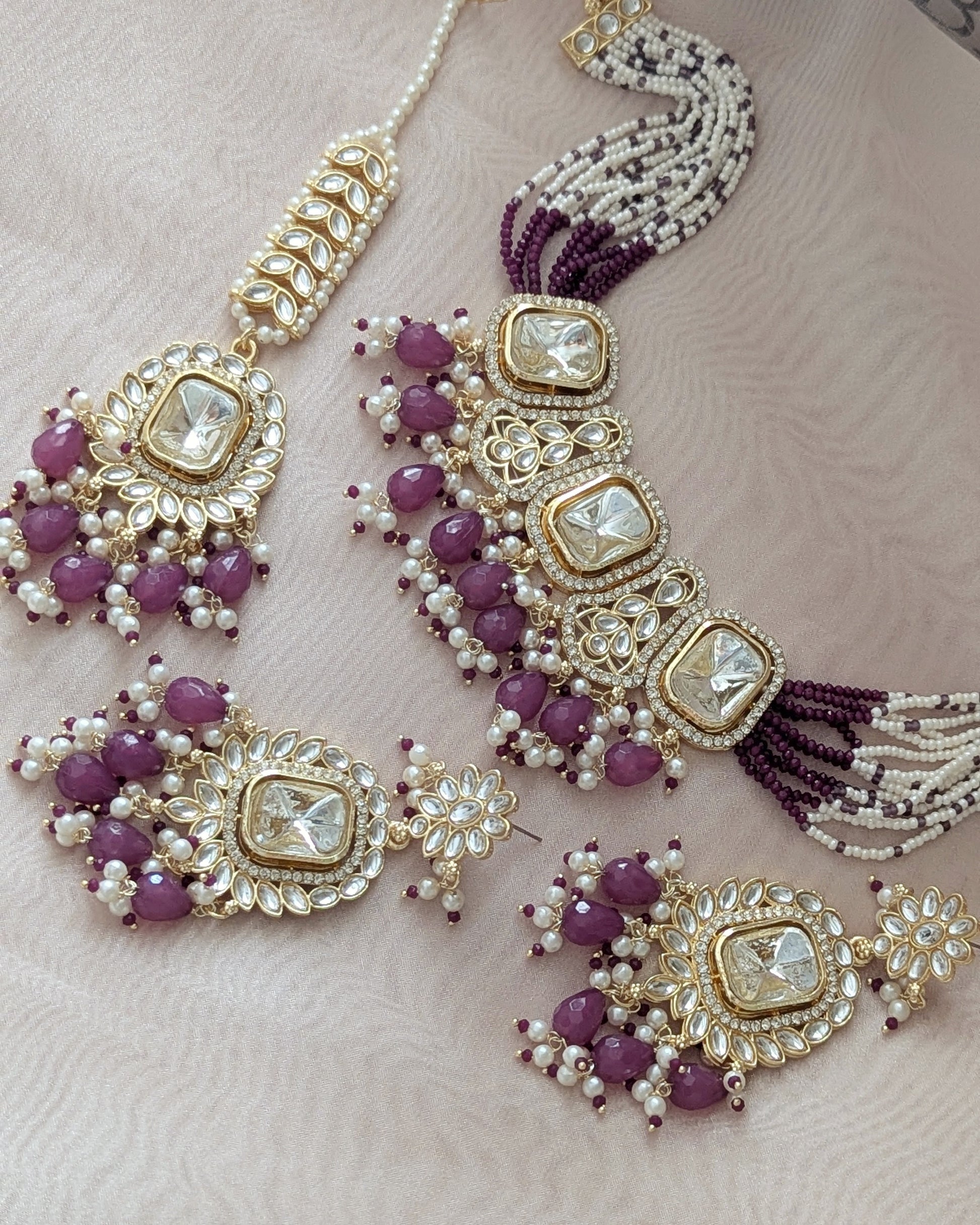 Polki lookalike choker necklace with matching earrings and tikka