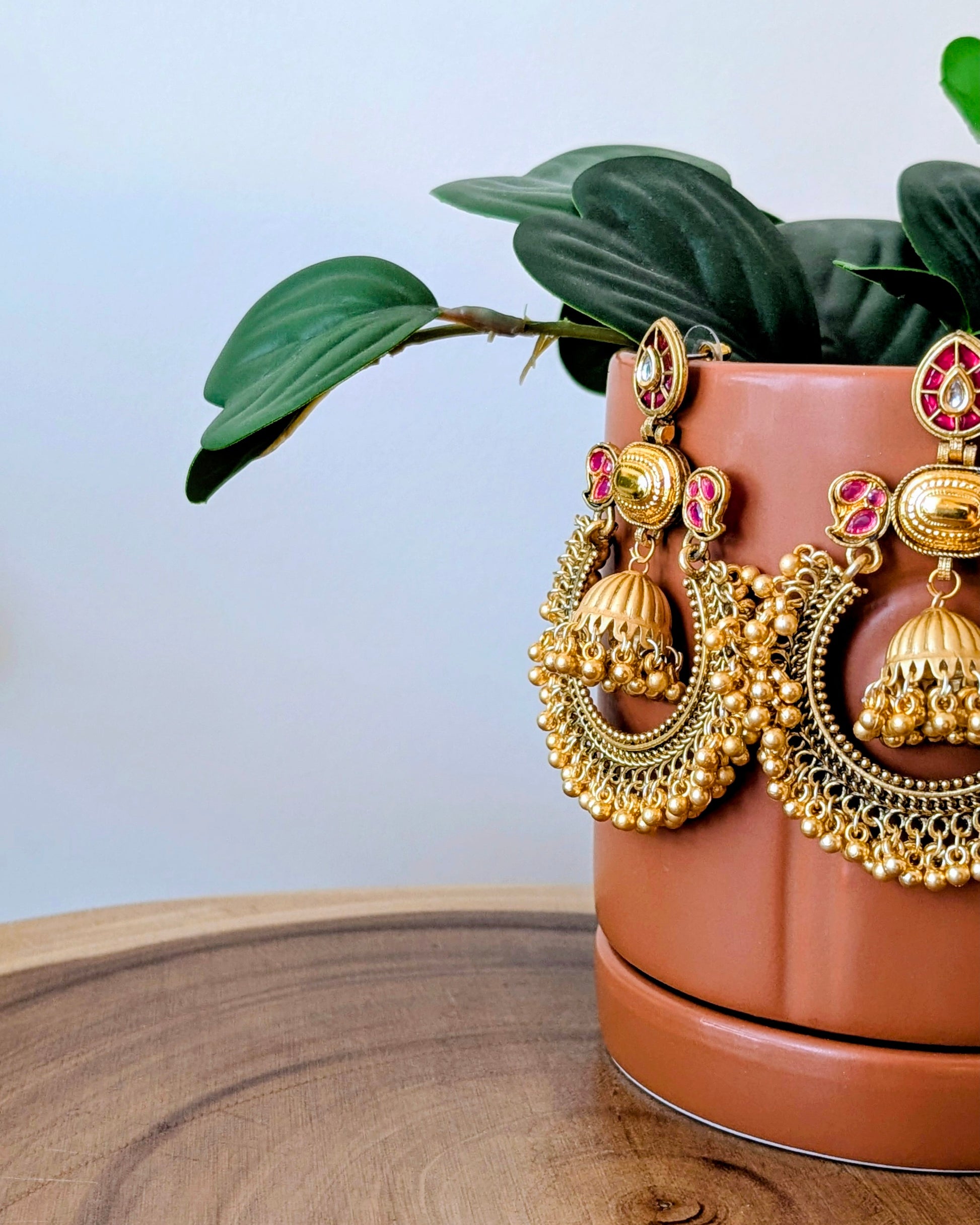 Ribha Kashmiri Chandbali Earrings - Red