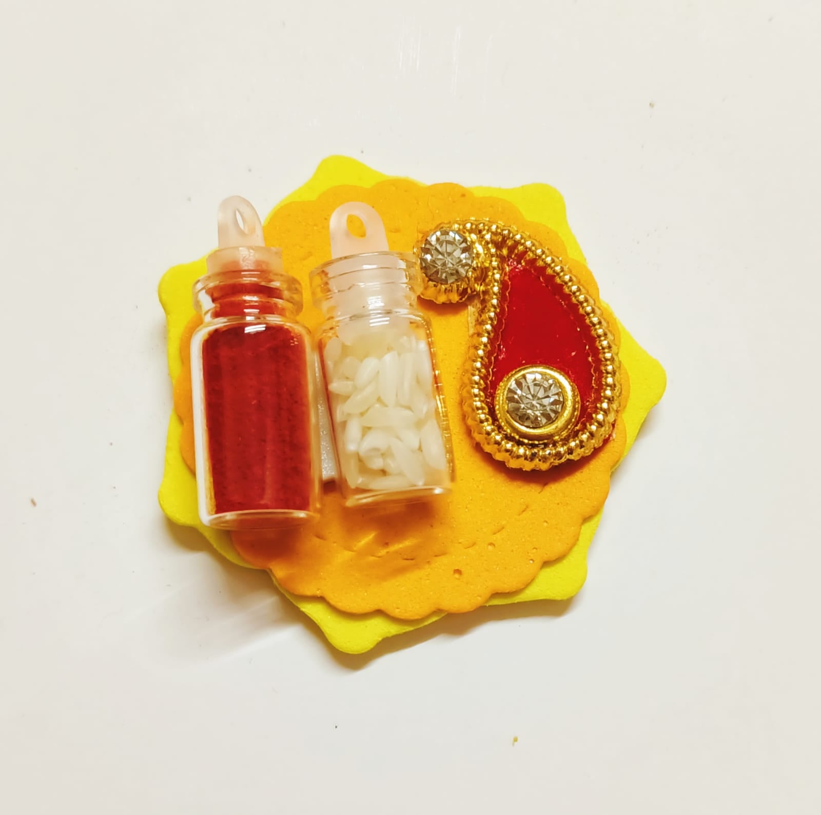 Complete your Rakhi with this cute roli & rice packaging. Price is for 2.