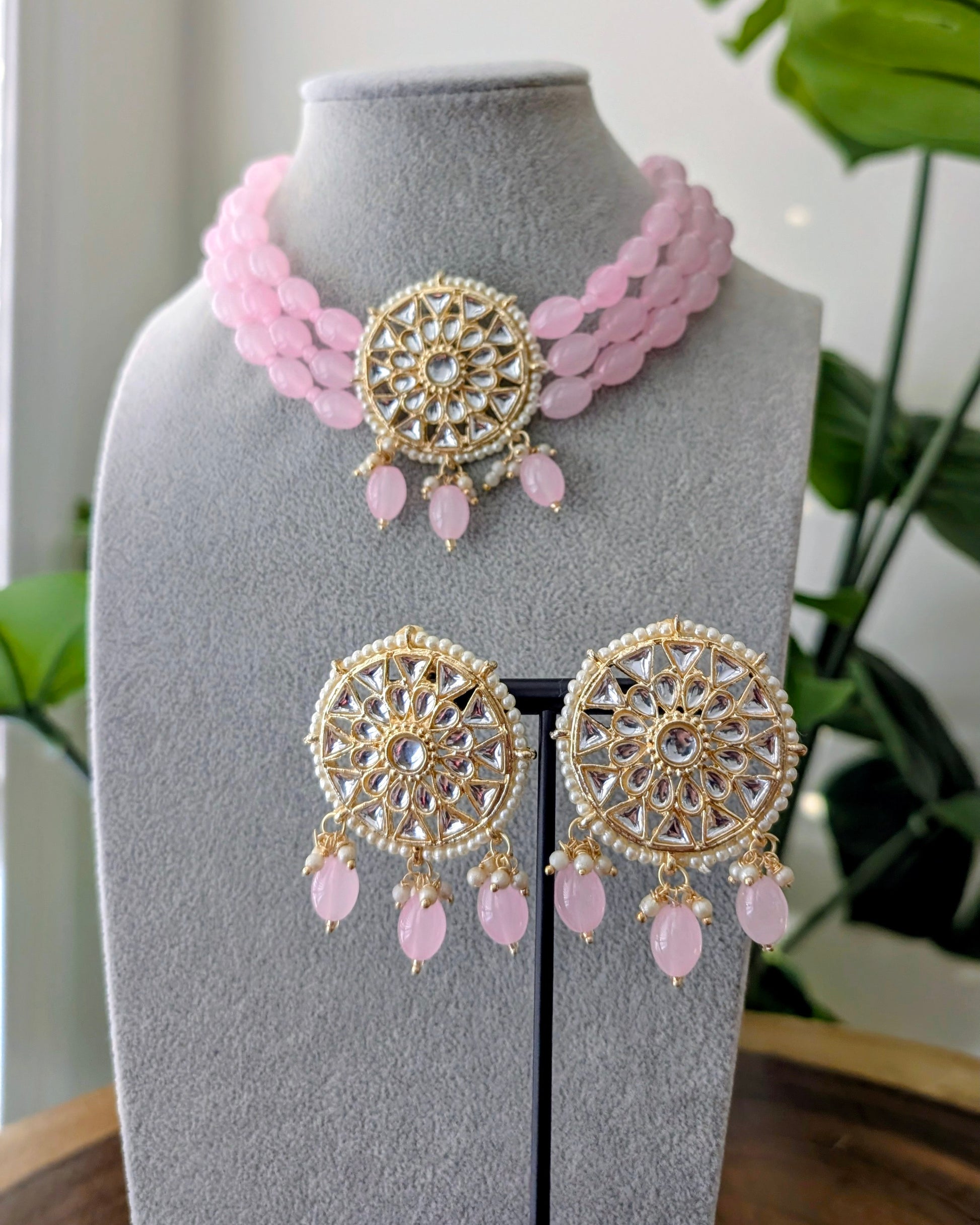 Roopam Kundan Choker Necklace - Baby Pink