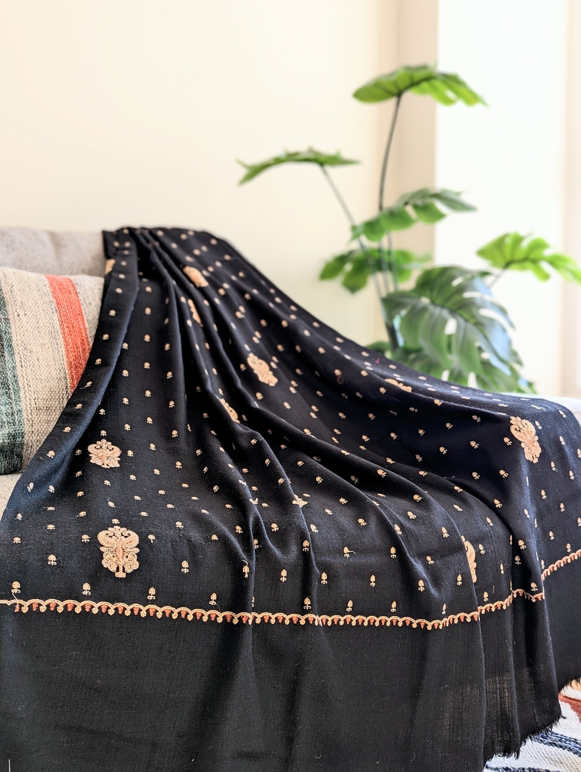 Very fine cashmere wool shawl with all over embroidery work. This shawl is like a warm hug from a loved one ❤️