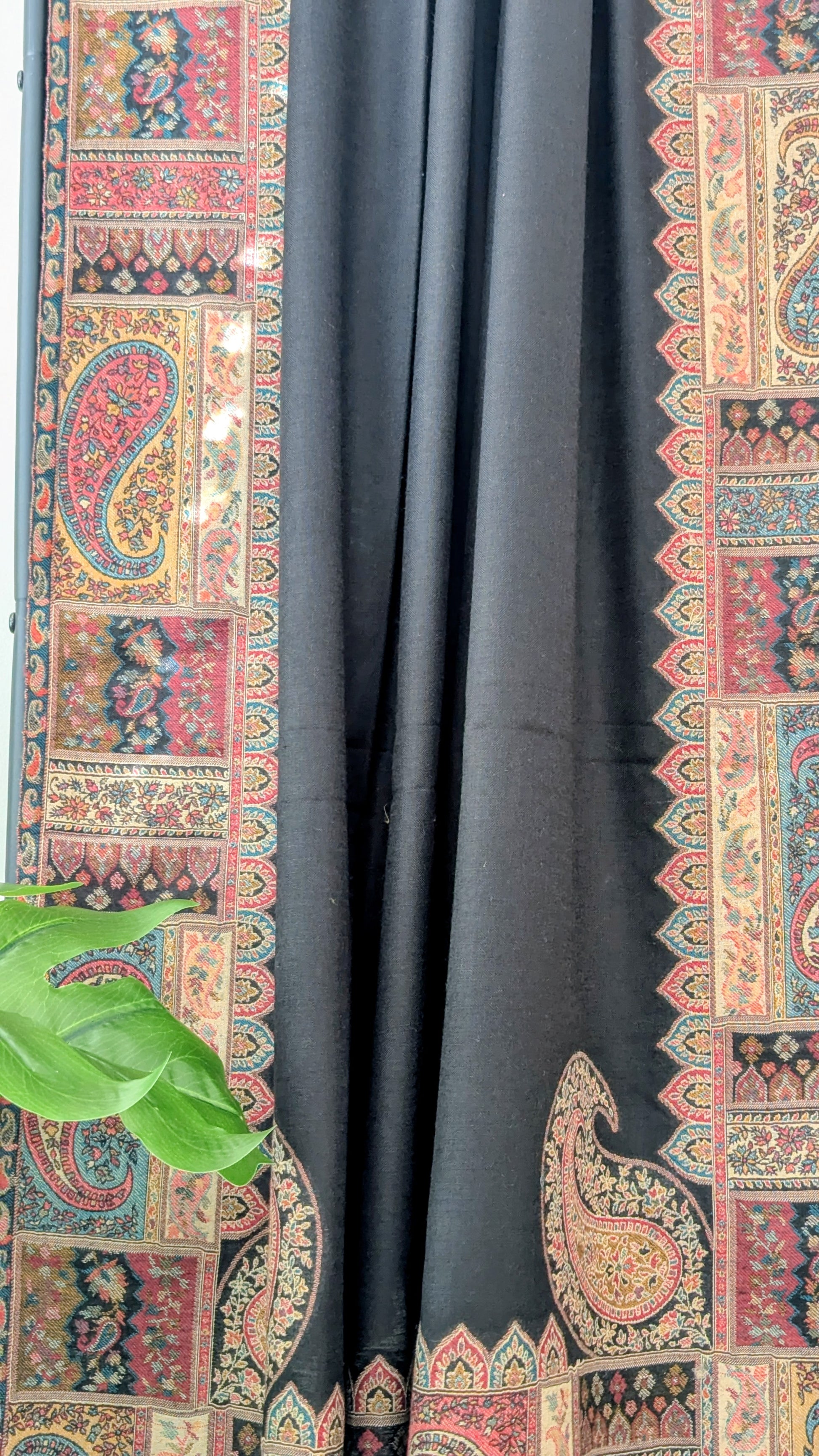 Semi Pashmina Woolen Shawl with Kani Border - Black