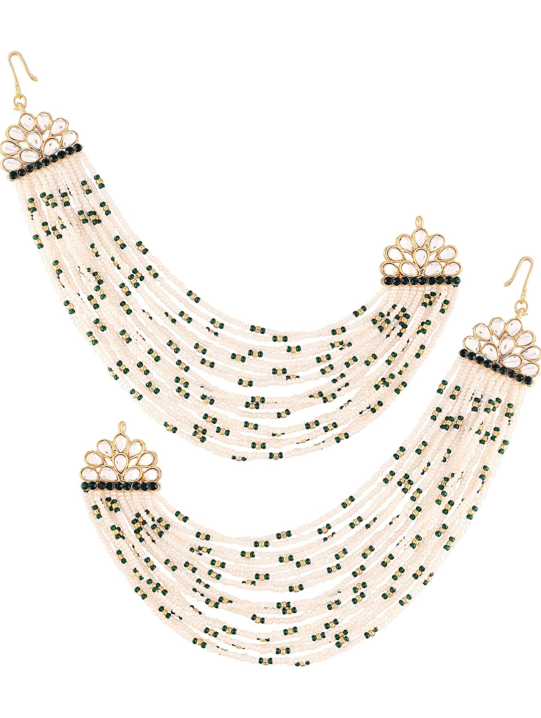 Kundan earrings with layered pearl chains attached. Available in three colors!