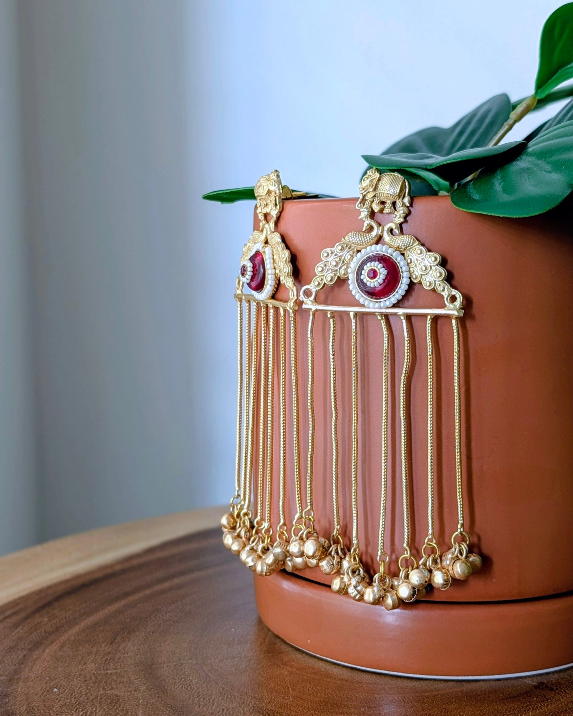 Premium Brass golden kundan jhumkas with unique design and ghungroo danglings