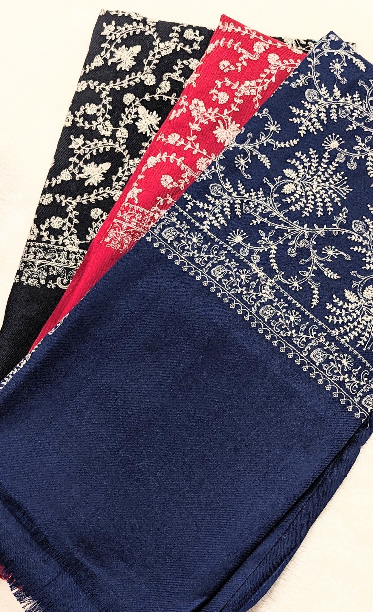 Full embroidery shawl, available in three colors.
