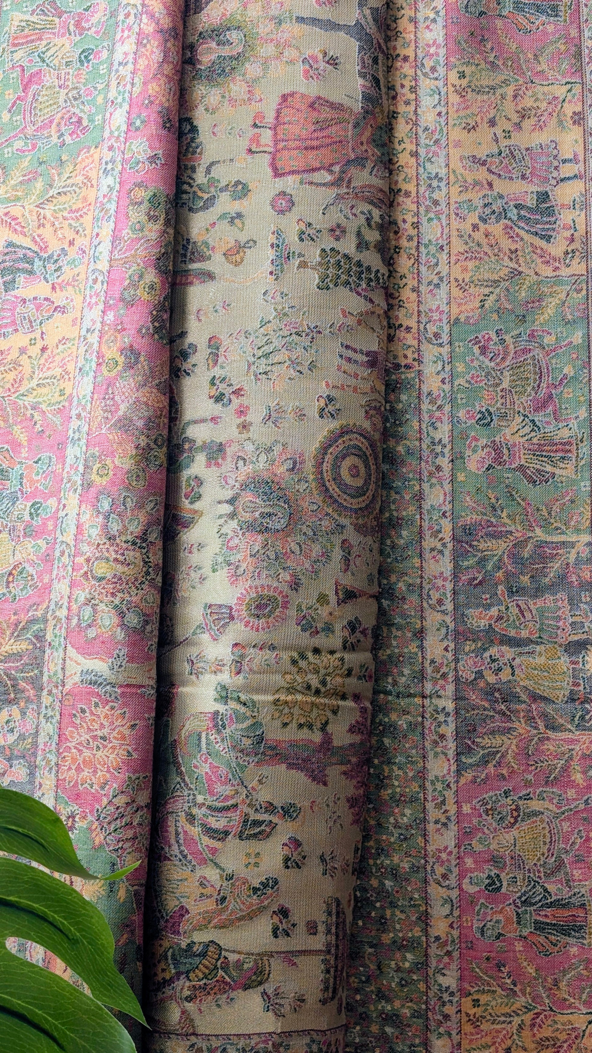 Unisex Semi Pashmina Woolen Darbar Kani Zari Shawl