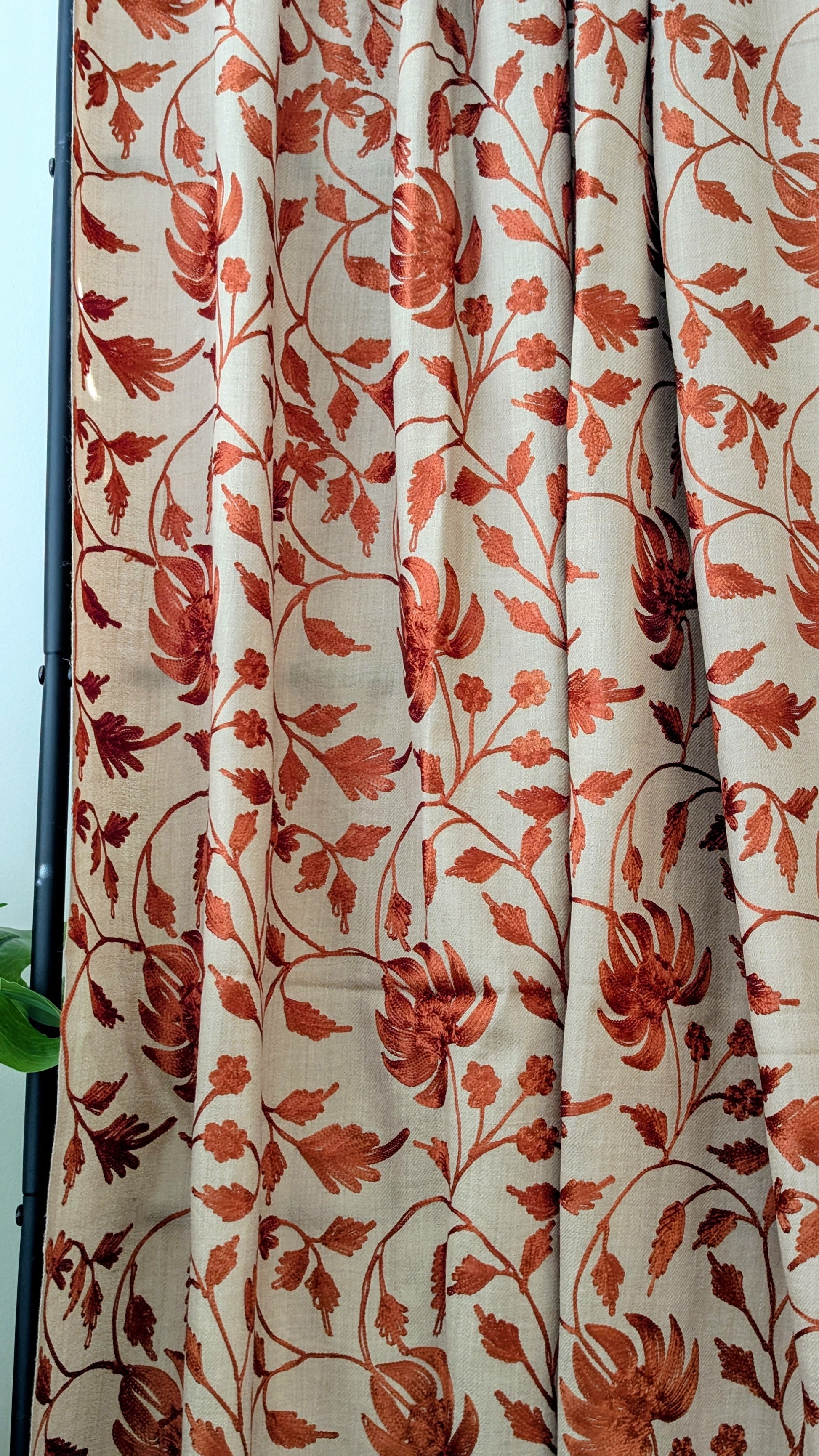 Unisex Semi Pashmina Woolen Embroidery Maple Shawl - Brown