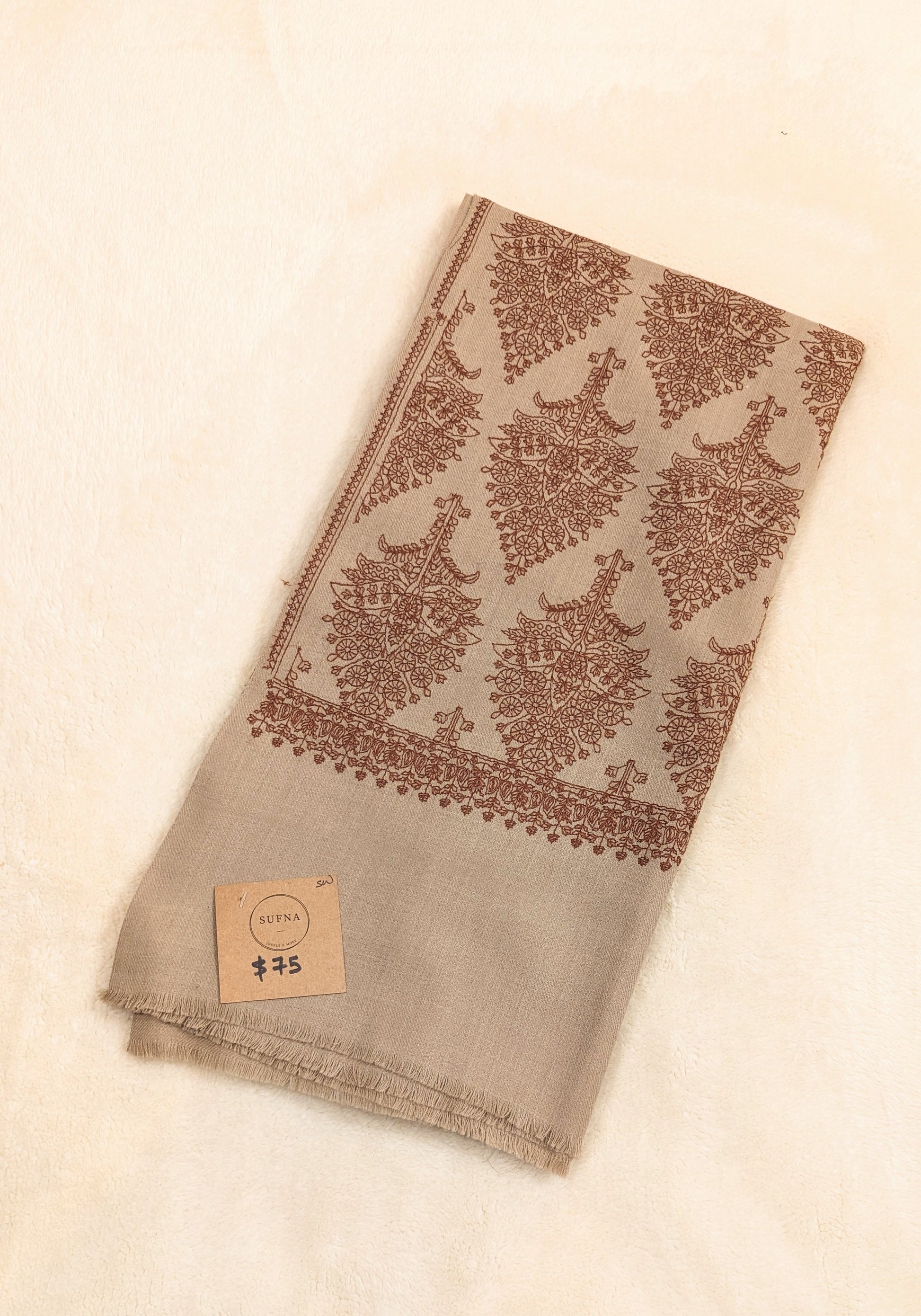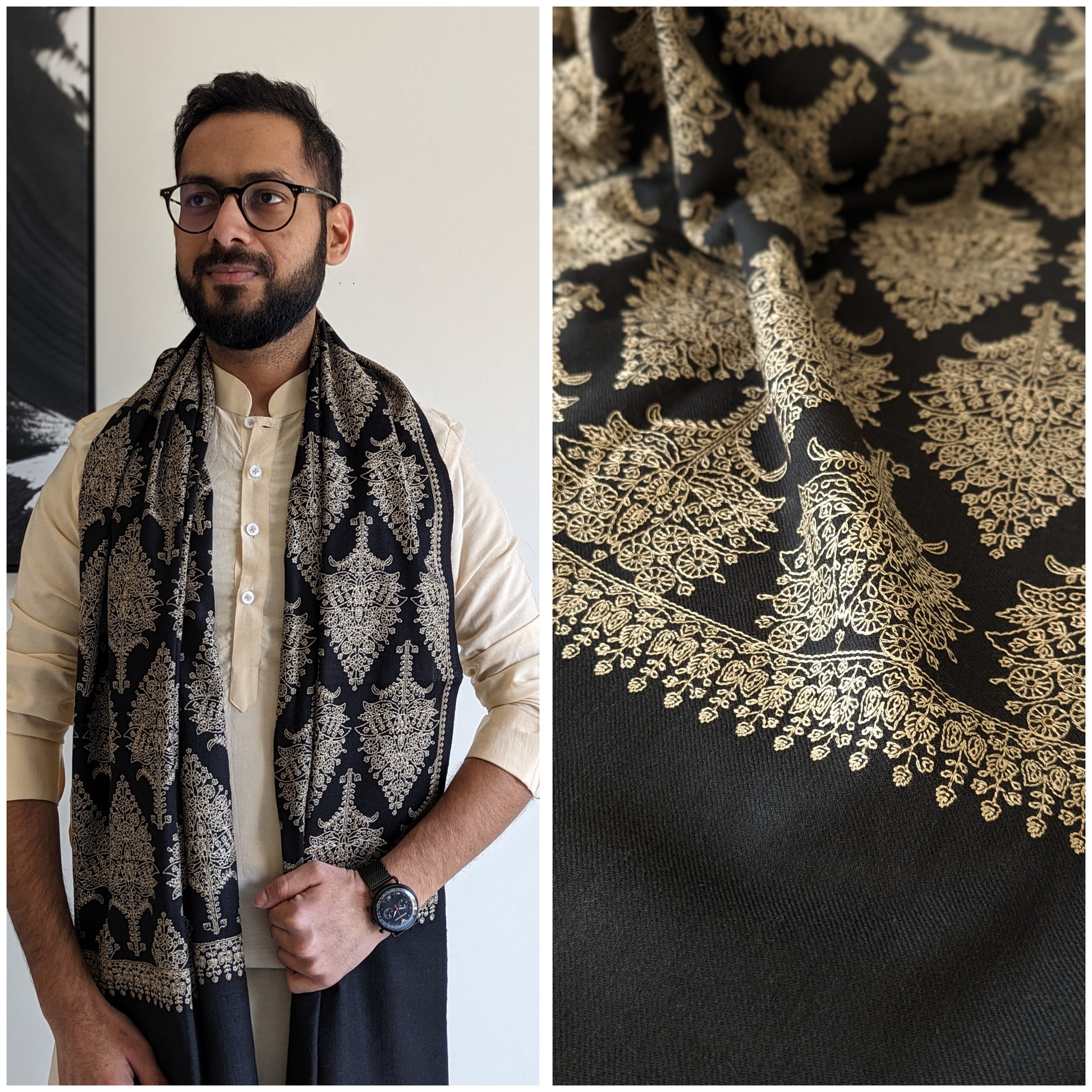 Crafted from super-soft Kashmiri wool with hand embroidery details, this shawl is sure to become an instant classic in your wardrobe.