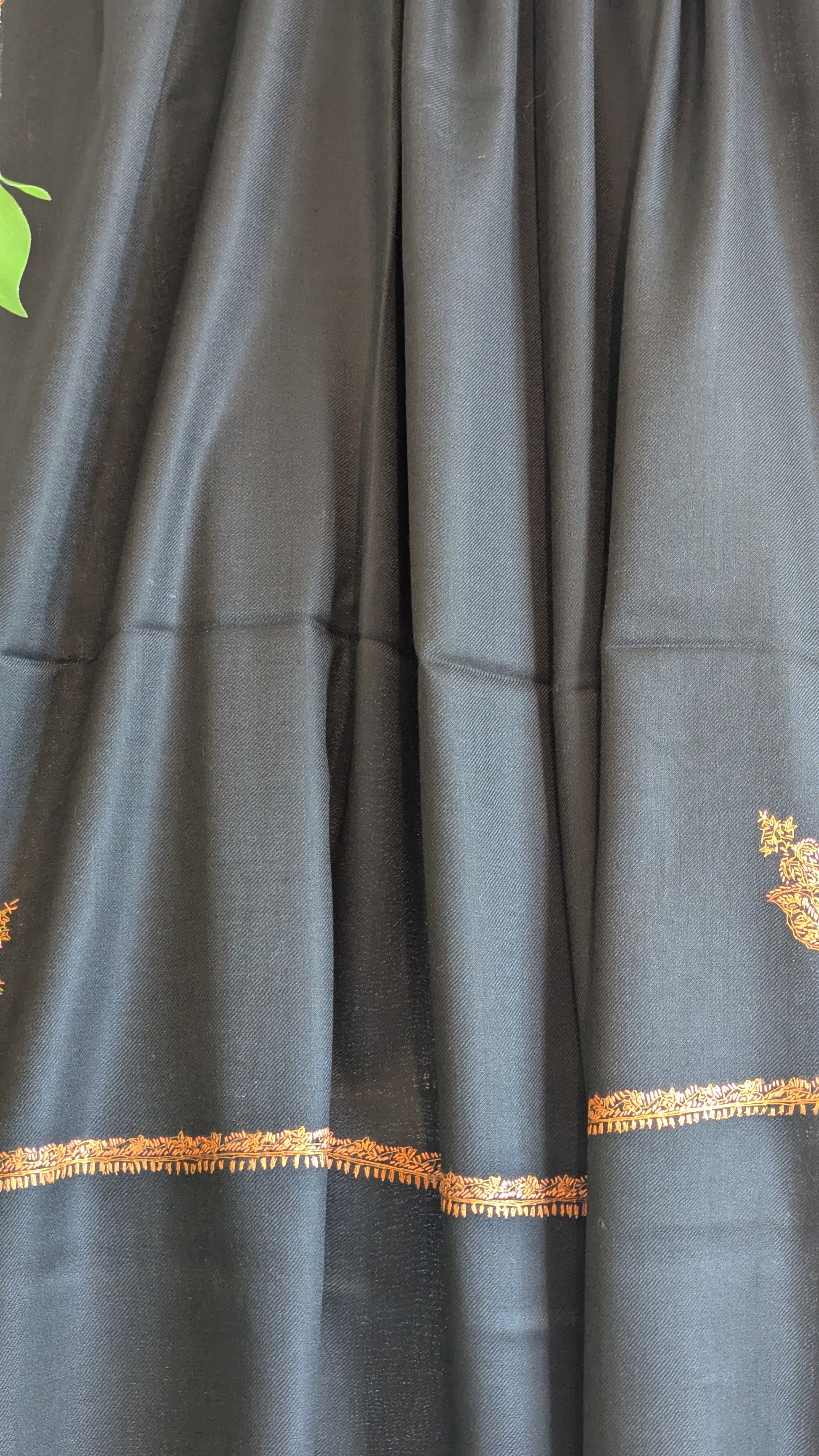 Timeless cashmere wool shawl with embroidery border and motifs.