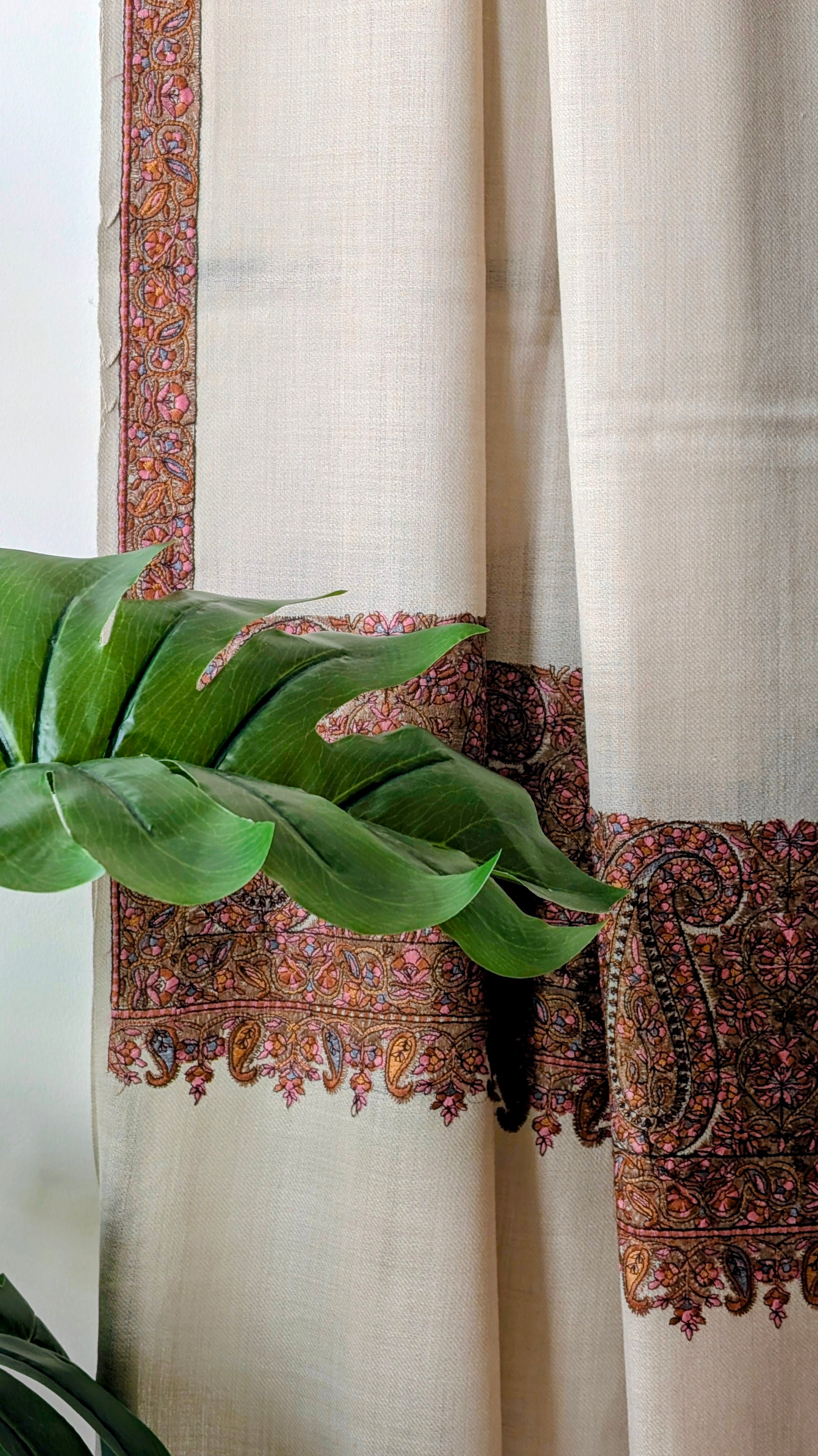 Unisex Woolen Hand Embroidered Woolen Shawl - Light Brown