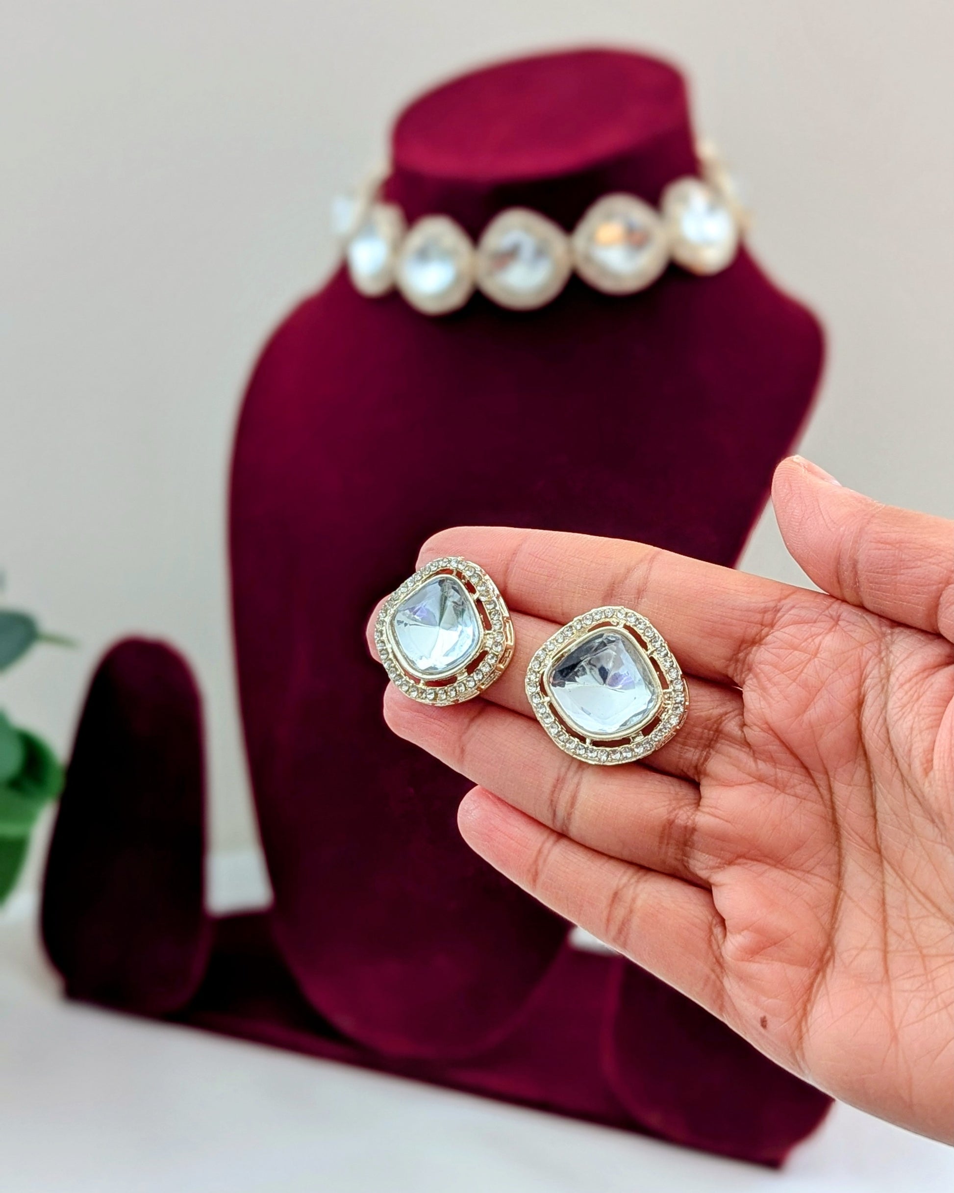 Polki lookalike choker necklace with matching earrings.