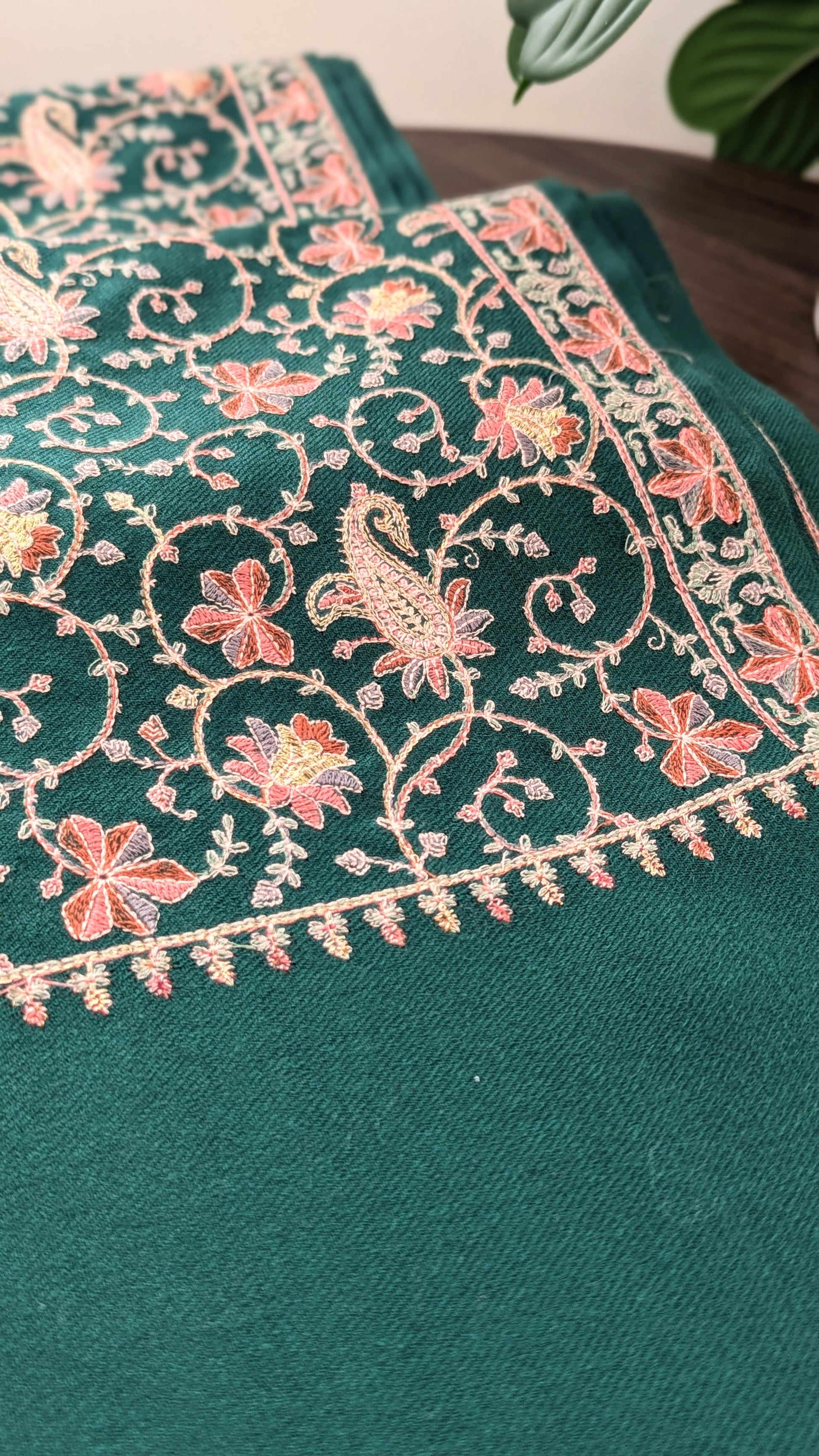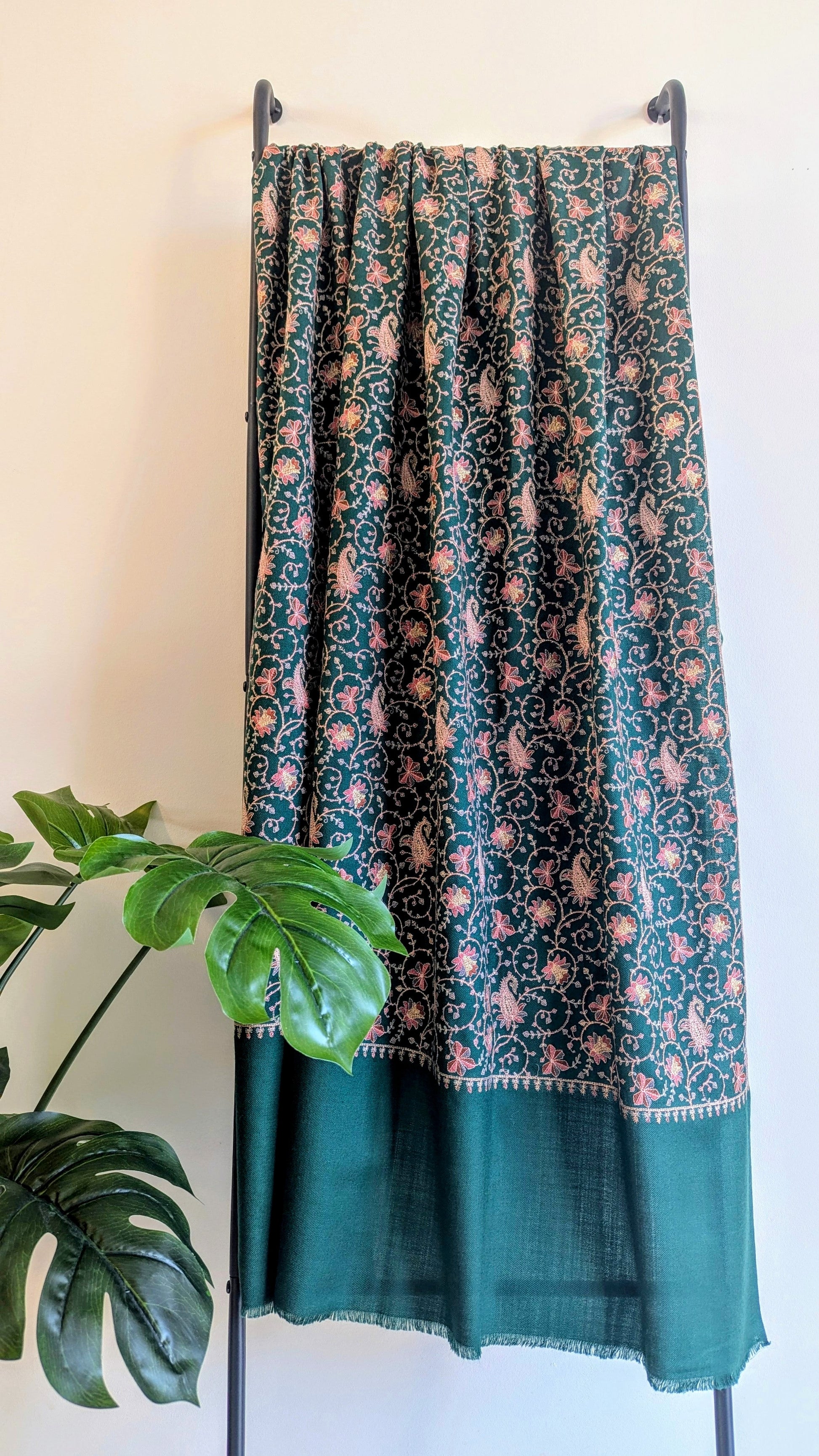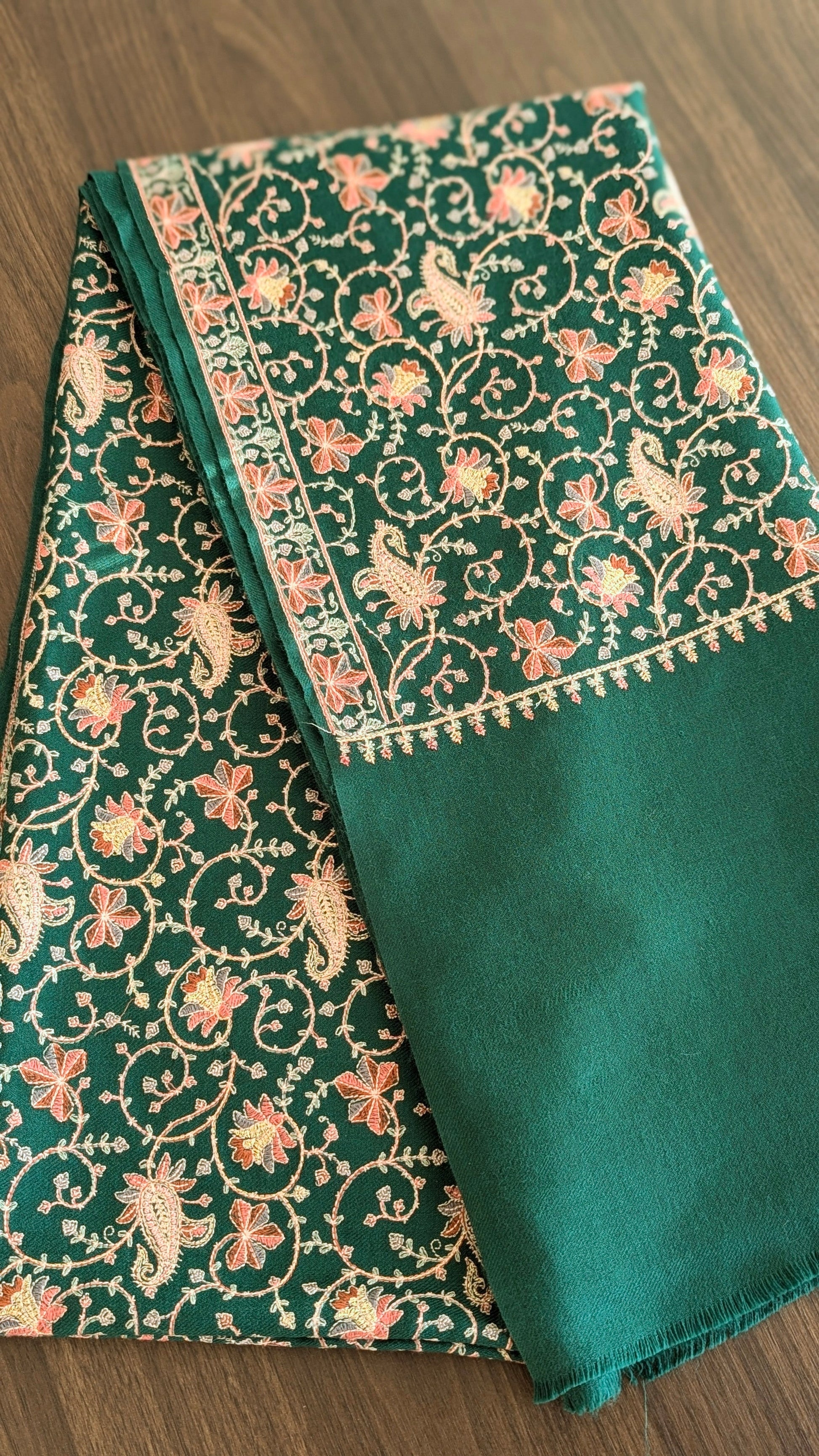 Premium quality timeless cashmere wool shawl with zari embroidery.
